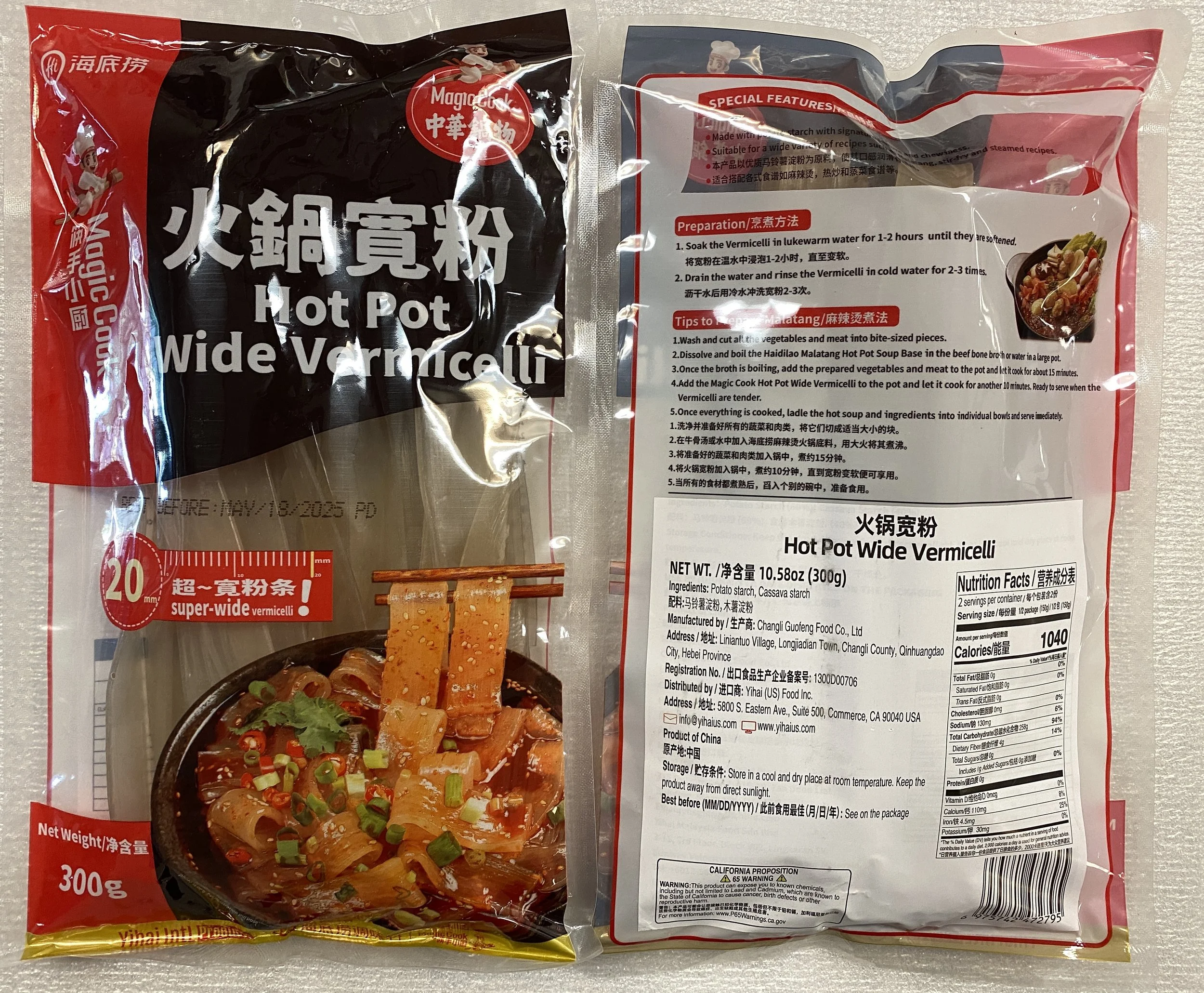 Products › Haidilao Hot Pot Wide Vermicelli | 海底捞火锅宽粉 Image 1 of 2 Image 2 of 2 Haidilao Hot Pot Wide Vermicelli | 海底捞火锅宽粉 $57.00 Item Code (编号): G257Size (箱规): 300g*30Barcode Number (条形码): 6975742472795 Add To Cart Added! Item Code (编号): G257Size (箱规): 300g*30Barcode Number (条形码): 6975742472795